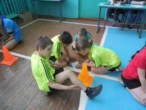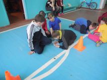 Соревнования проходили в три этапа. Первый этап- эстафеты. Второй этап - вопросы по правилам дорожного движения и медицине. Третий этап- езда на велосипеде. Провели соревнования учителя физической культуры аверченкова е.и., годовикова м.в. И вожатые школы винцевич е.в., шрамова е.н.