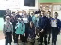 1 место-младшая группа (Романов Иван 4Б кл.,Баландин Виталий 4Г кл.,Артёмова Вероника 4В кл.) 1 место- средняя группа(Криворчук Марина 7Б кл.,Сметана Диана 8Г кл.,Романов Даниил 8Г кл.,Дубасов Сергей 8В кл.,Усцилемов Егор 8Б кл., Винцевич Никита 8Г кл.Никонов Даниил 8В кл.,Сазонов Никита 8Б кл.) 2 место- старшая группа(Васильев Константин 9Г кл.,Уксусова Елизавета 10Б кл., Жданов Сергей 10Б кл.,Григоров Илья 10Б кл.,Кокачев Егор 11А кл.Герасимовский Кирилл 9Б кл.) |