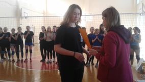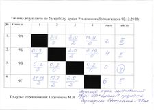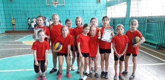 Наша команда: Поздеева Екатерина 4Б класс-капитан, Клыжина Вероника 4Б кл., Попова Любовь 4Б кл.,Киевская Любовь 4В кл., Киевская Вера 4В кл.,Артемова Вероника 4В кл.,Капустина Светлана 4В кл.,Орлова Юлия 4А кл.,Васильева Карина 4А кл.,Долгоносова Татьяна 4А кл. Девчонки заняли 1 место, обыграв всех своих соперников. Лучший игрок соревнований Клыжина Вероника 4Б класс. Команда награждена грамотами и кубком от УО.