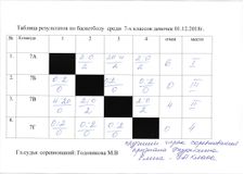 Среди 7 классов 1 место заняла команда девочек 7А класса, 2 место 7В. 7Б и 7Г класс участие в соревнованиях не приняли.