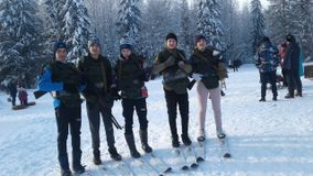 Участие приняли 2 команды: «Десант» и «Бородино». Участники награждены грамотами по номинациям: «Защитники страны» и «Бравые бойцы». Провели соревнования учителя физической культуры Годовикова М.В.и Аверченкова Е.И.